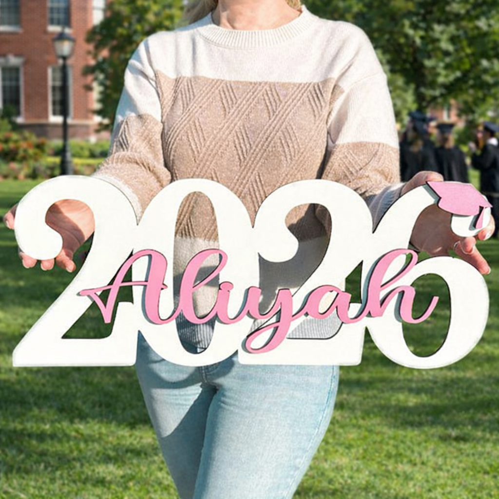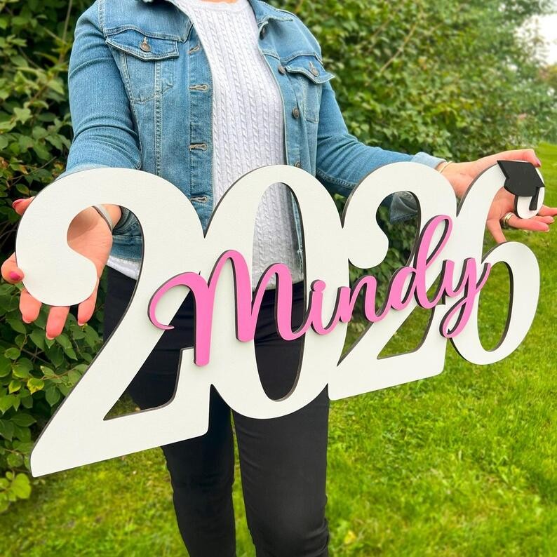 Celebrate Class of 2026 with a custom wooden graduation sign designed for stunning photos and party displays.This personalized name sign is laser cut from premium wood to highlight your graduate’s big moment.Perfect for high school graduation grad parties and keepsake decor.