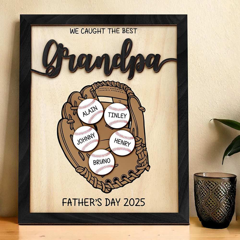 Custom 3D Baseball Dad Sign with Kids Names for Father's Day Gift