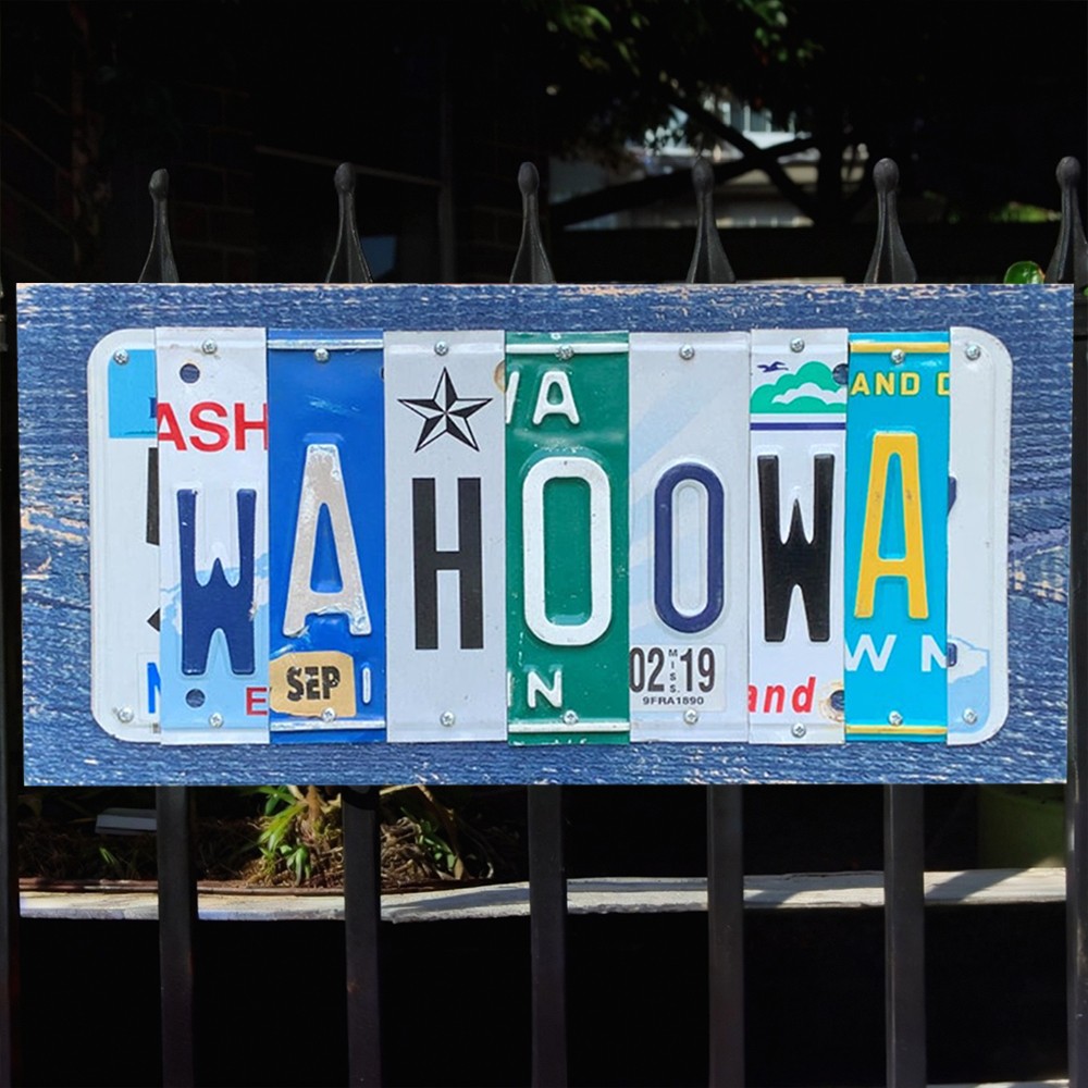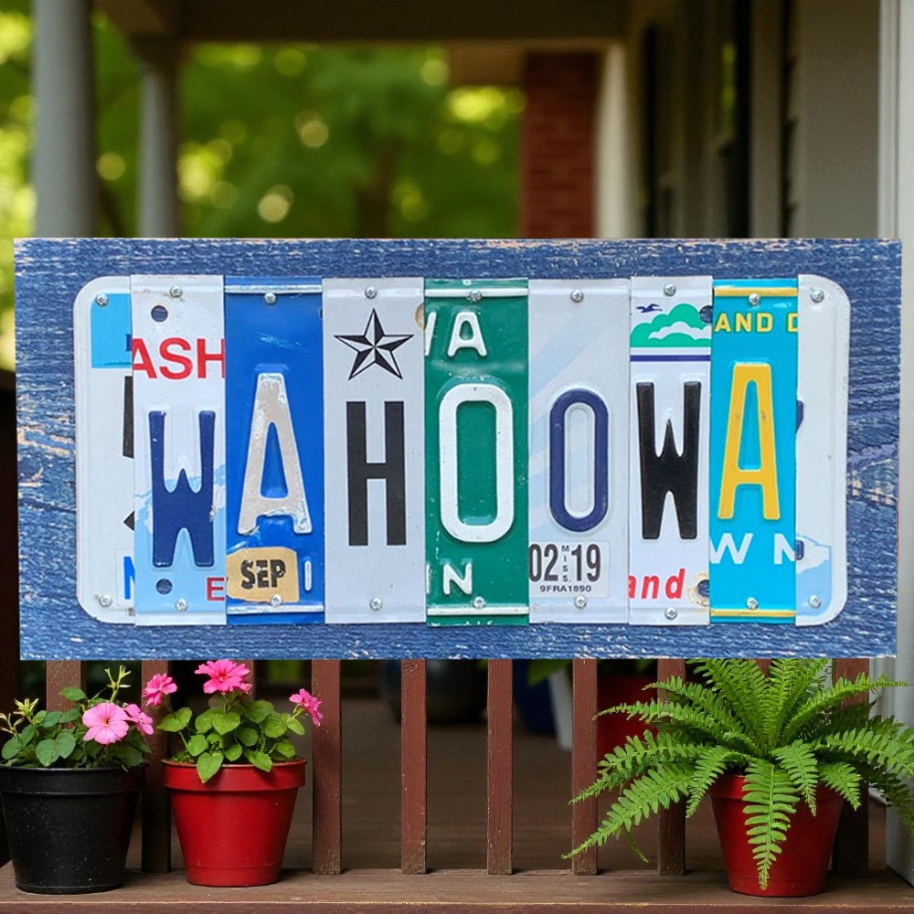 Wood & License Plate Splicing Style: Each plate strip is individually crafted and mounted onto a solid wooden base. The raised textures and real plate details give it a handcrafted, authentic look.