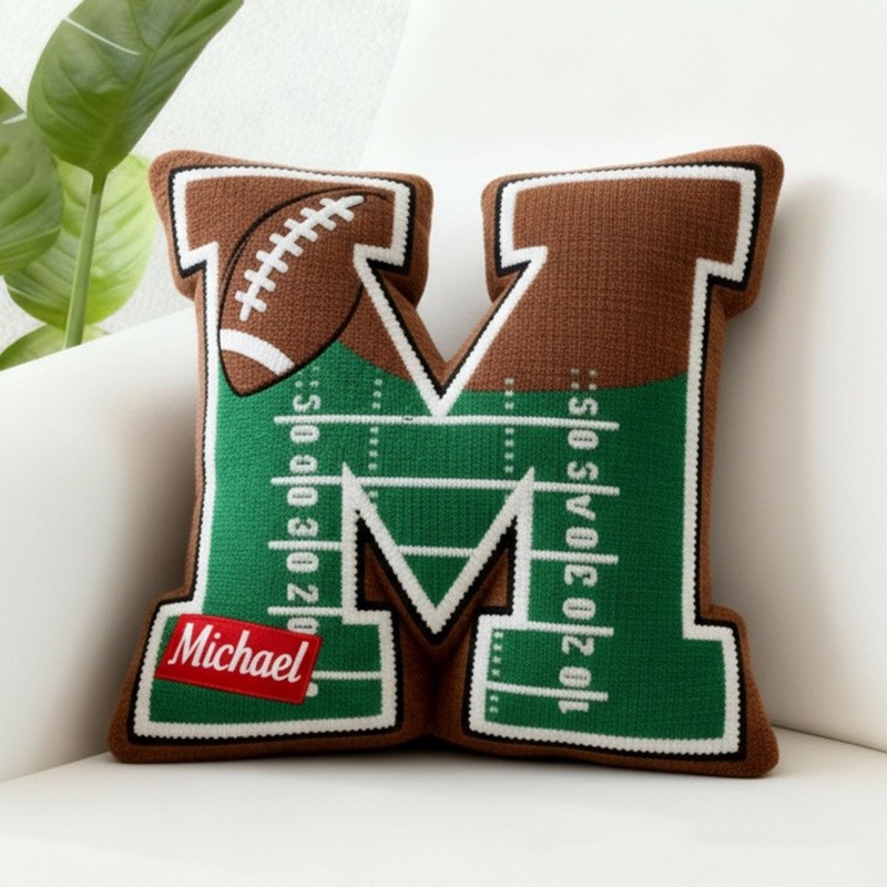 Personalized Football Letter Pillow with Custom Name Design