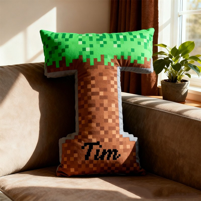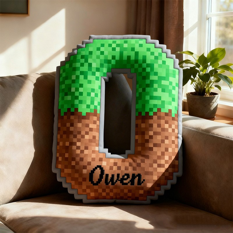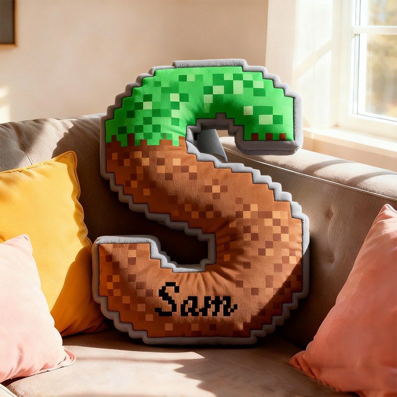 Personalized Pixel Grass Letter Pillow with Custom Name Design