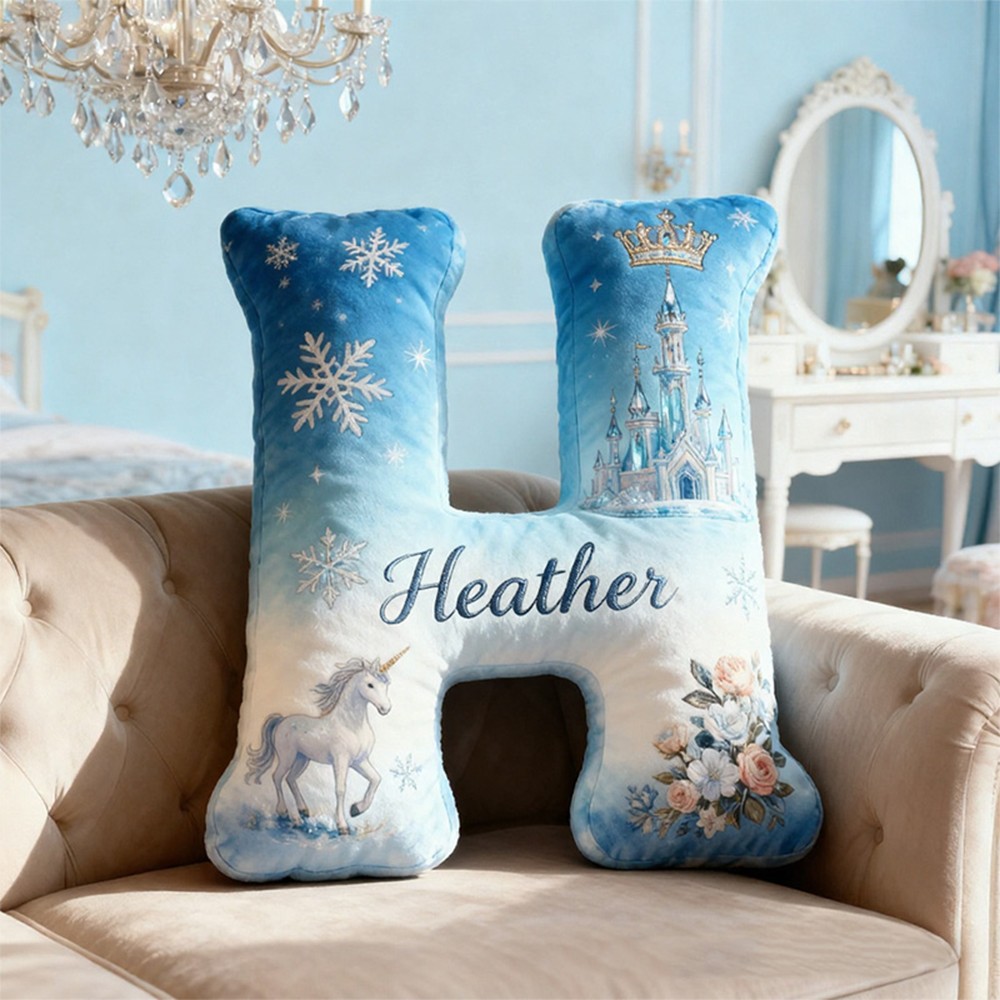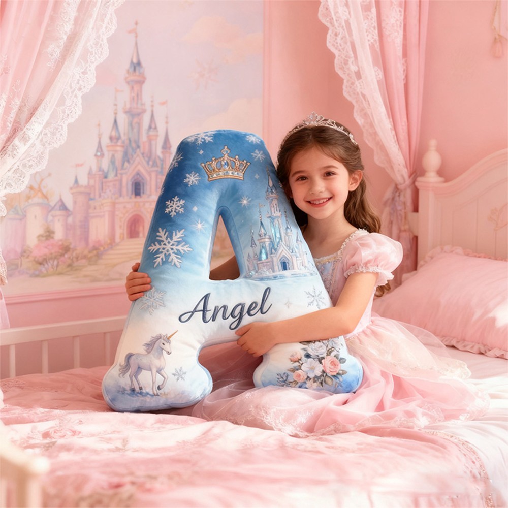 Personalized Cartoon Ice Fairy Tale Letter Pillow with Custom Name Design