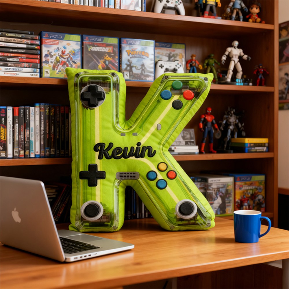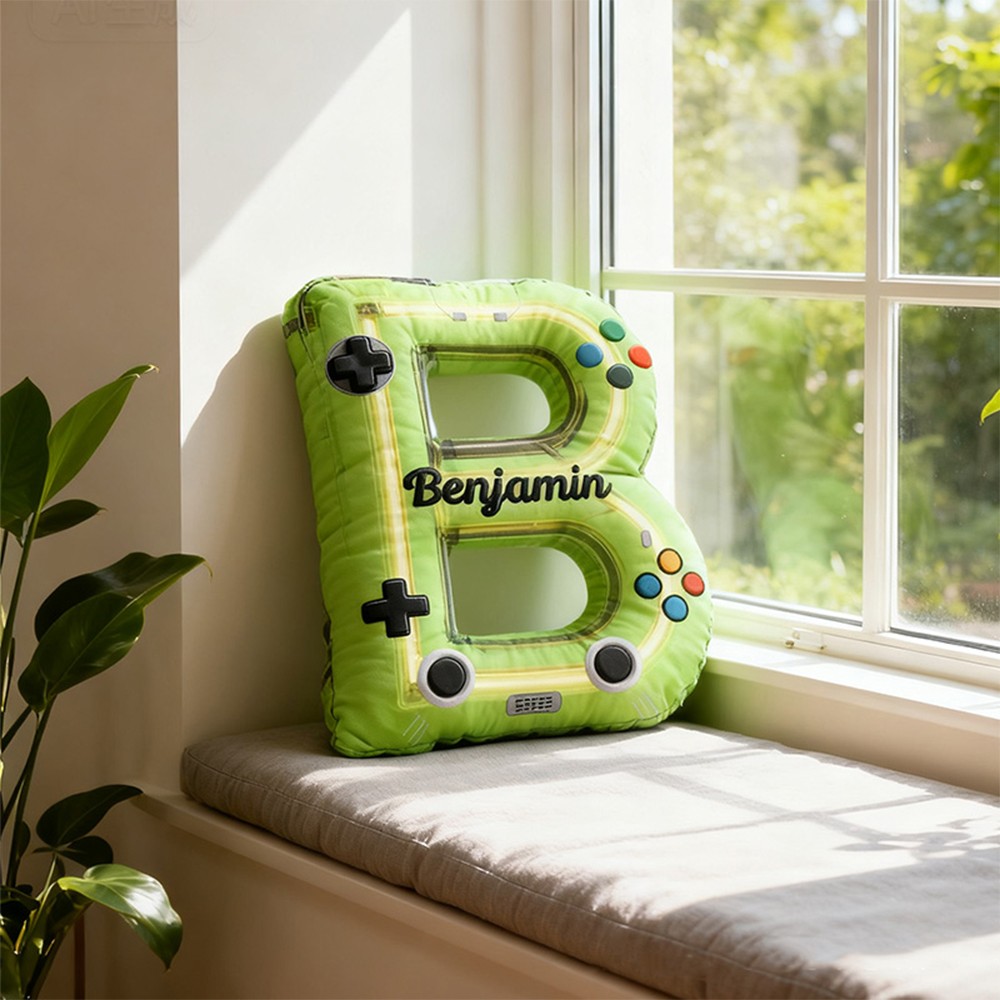Personalized Neon Controller Letter Pillow with Custom Name Design