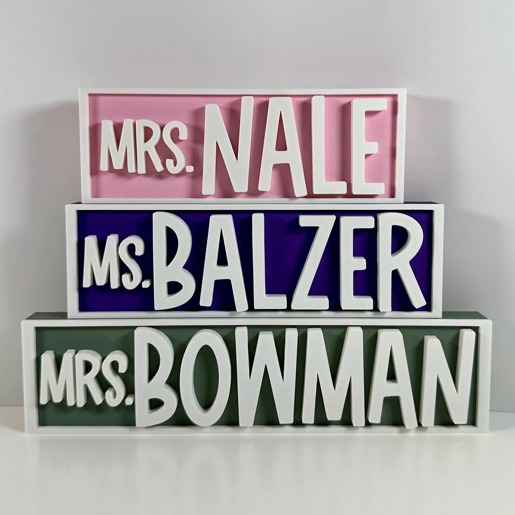 Personalized 3D Teacher Name Sign Printed Desk Plate Office Decor Gift for Teachers