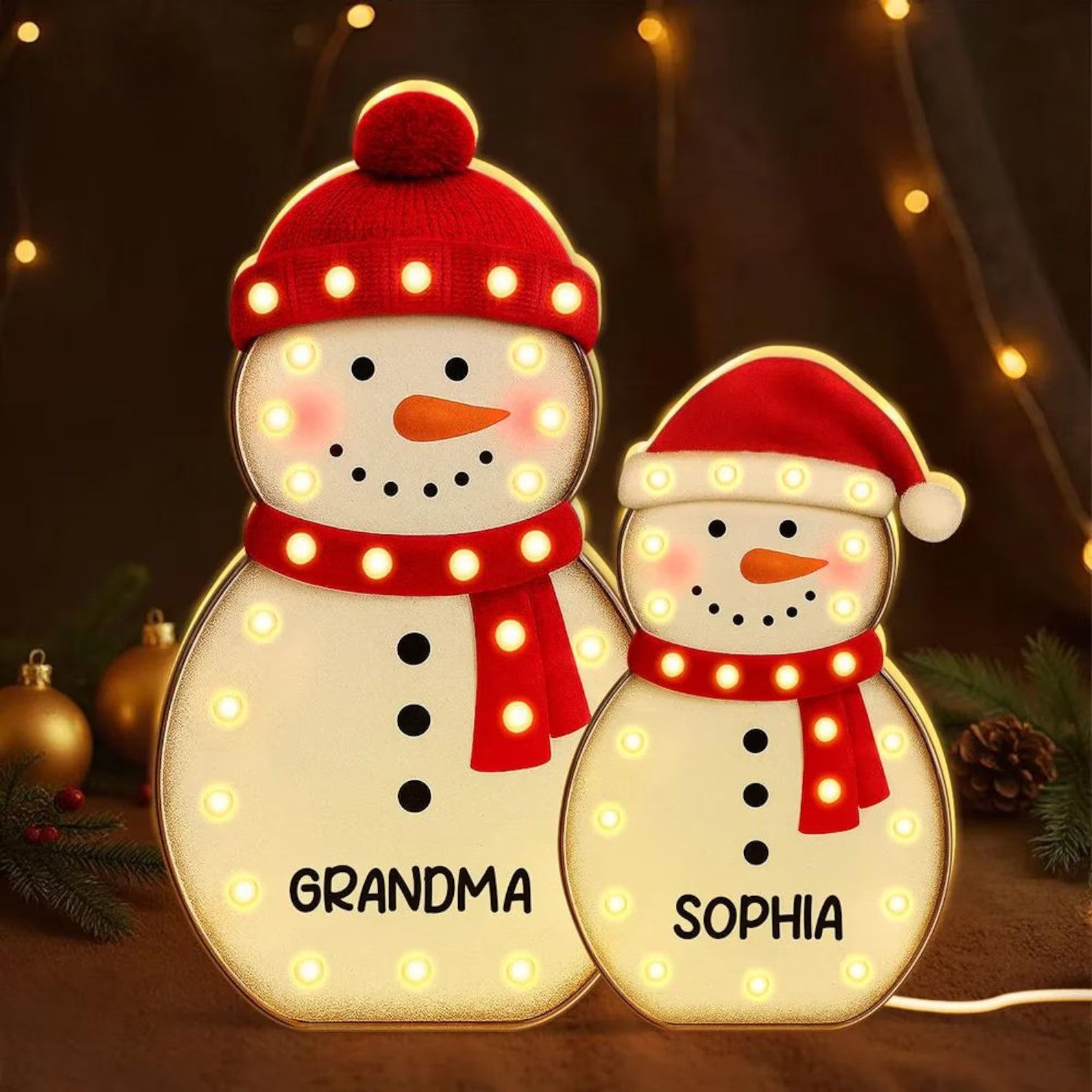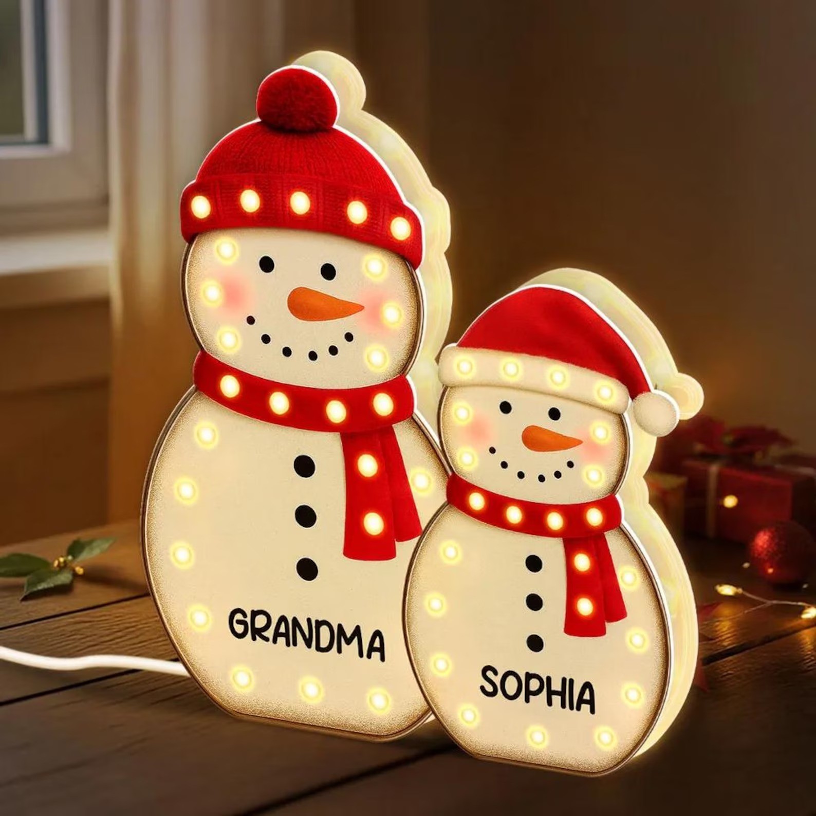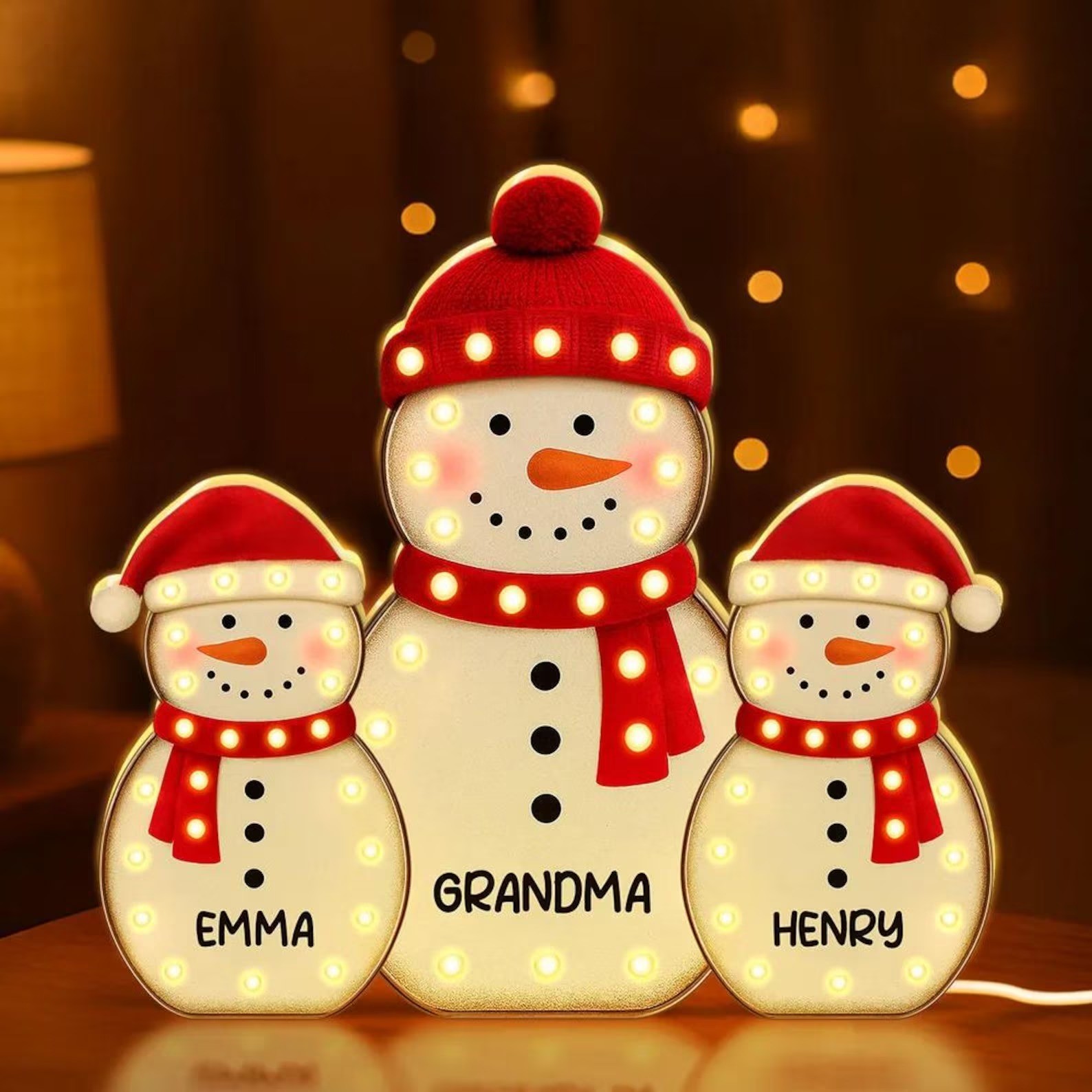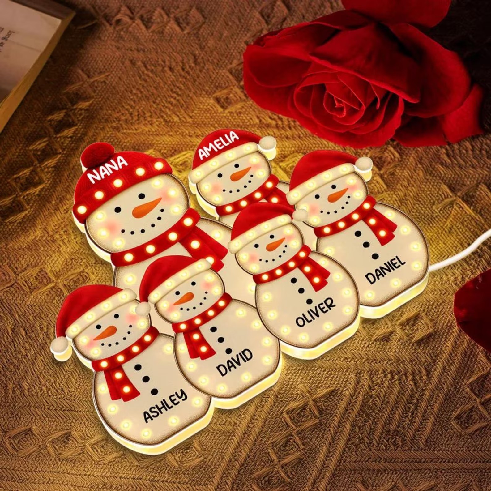 Personalized Snowman Light Box Family Christmas Gift Cozy Winter Home Decor