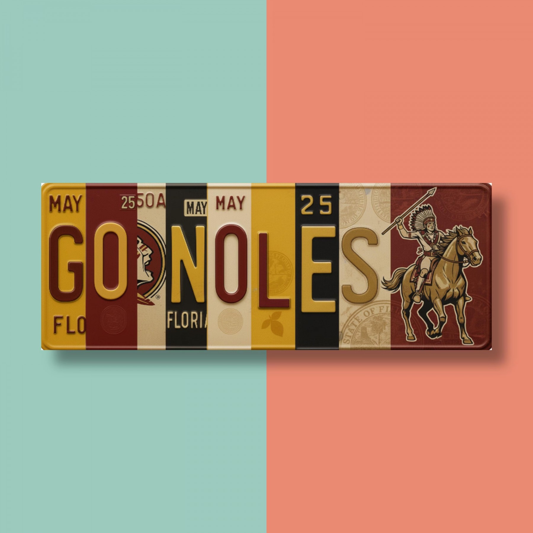 Florida State Seminoles License Plate Sign College Football Decor Gift for Him